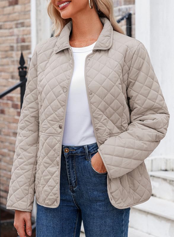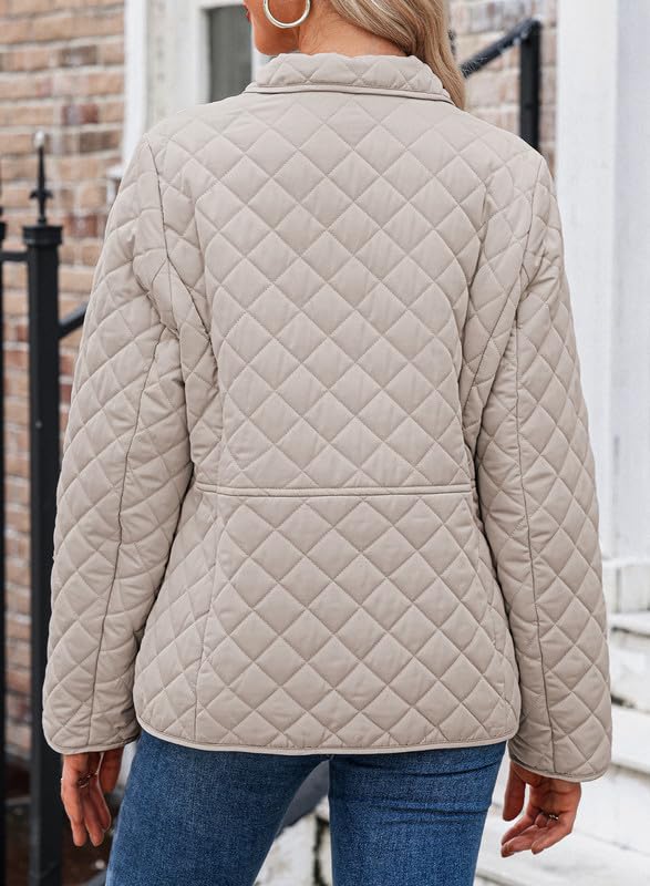 Dokotoo Women’s Winter Quilted Jackets Long Sleeve Button Down Diamond Puffer Jacket Outerwear Coats with Pockets